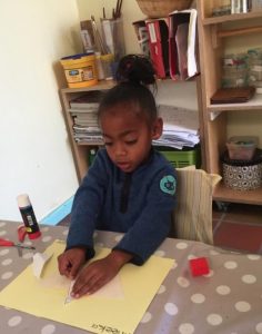 The Grade R group in the Daisy class are learning to recognise, name and copy shapes which are then used to create patterns. Songs, games,
